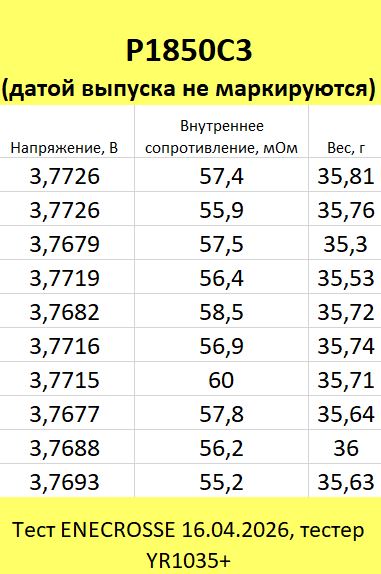 ОБРАТИТЕ ВНИМАНИЕ: Мы не гарантируем, что вы получите аккумуляторы именно с такими значениями напряжения и внутреннего сопротивления, как указано выше и на фото в галерее. Эта информация приводится нами лишь для того, чтобы вы могли оценить качество аккумуляторов данной серии, оценив разбег напряжения и внутреннего сопротивления в ВЫБОРКЕ из 10 шт. Мы стараемся поддерживать эту информацию по выборке максимально актуальной (так как в разных партиях параметры могут различаться).