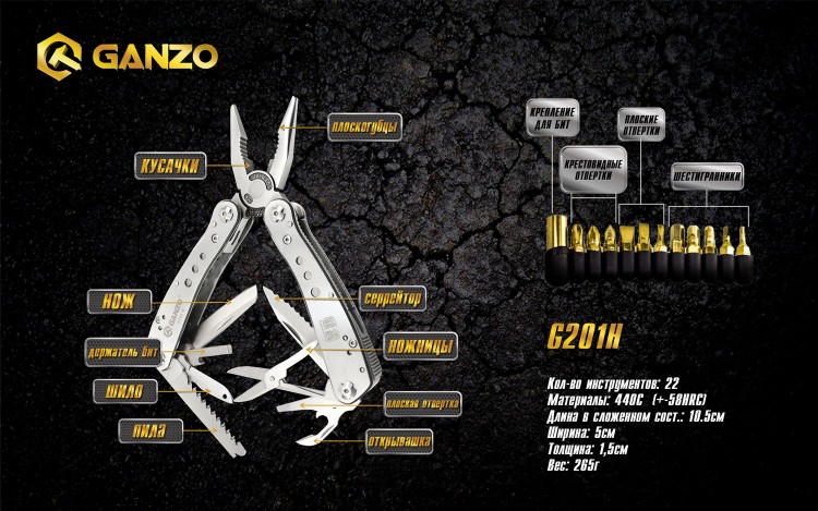 Отзывы про Мультитул Ganzo G201H (22 функции)